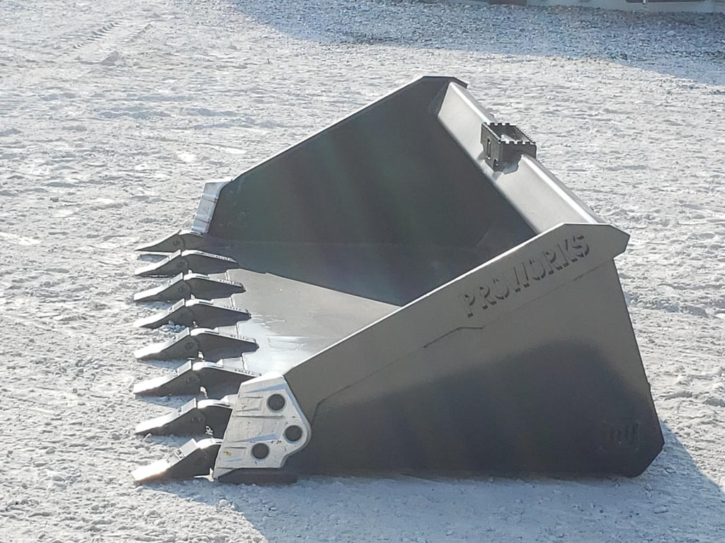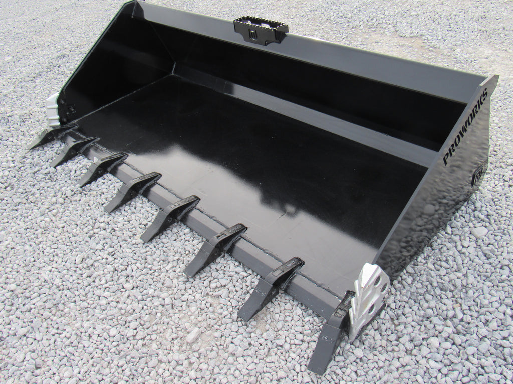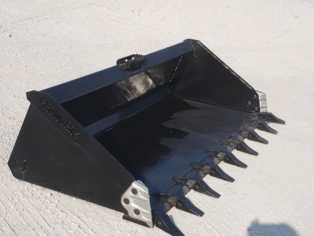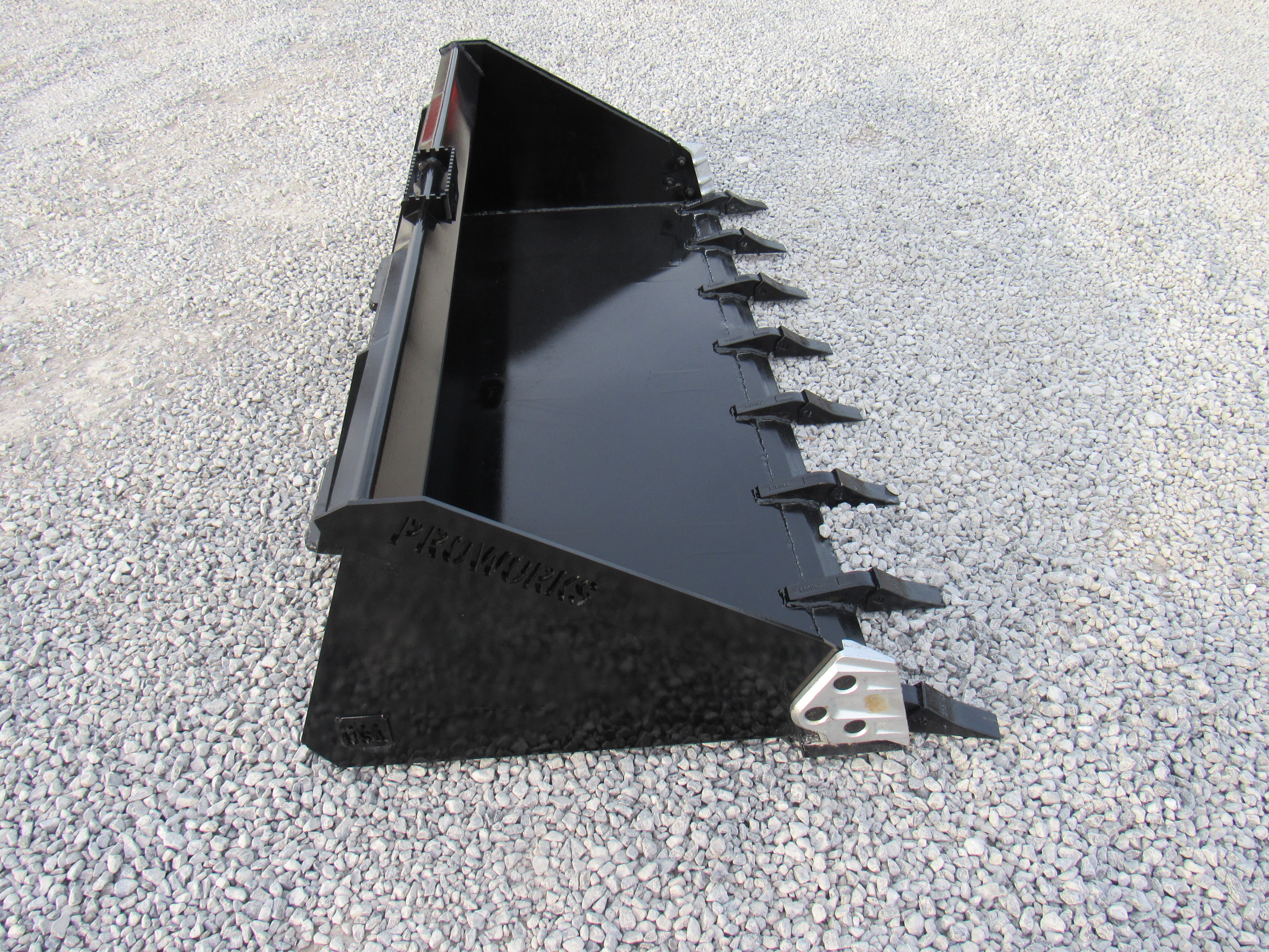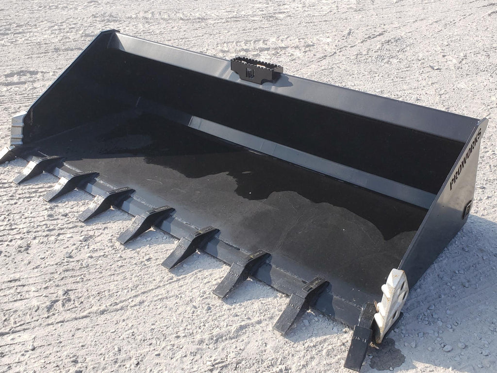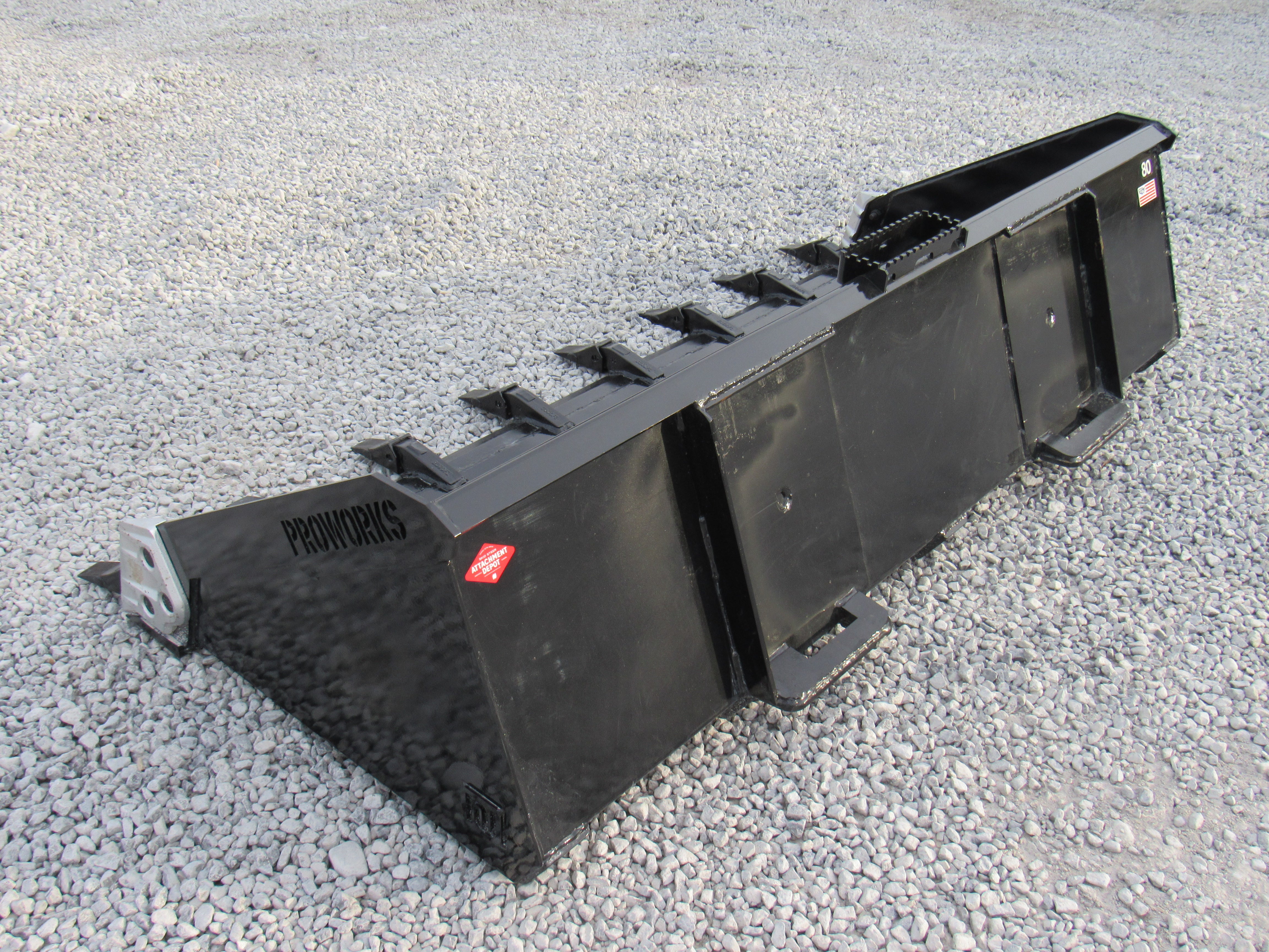 The severe duty low profile bucket from PROWORKS is ideal for moving, digging, and grading dirt or gravel. This bucket is great for general purpose bucket use and features a 3/16″ wrap, 3/8″ side stiffener with larger heavy-duty profile, and bolt on side cutters making this a very durable/long lasting bucket. This bucket is made in the United States by American craftsmen, as are all PROWORKS brand attachments.