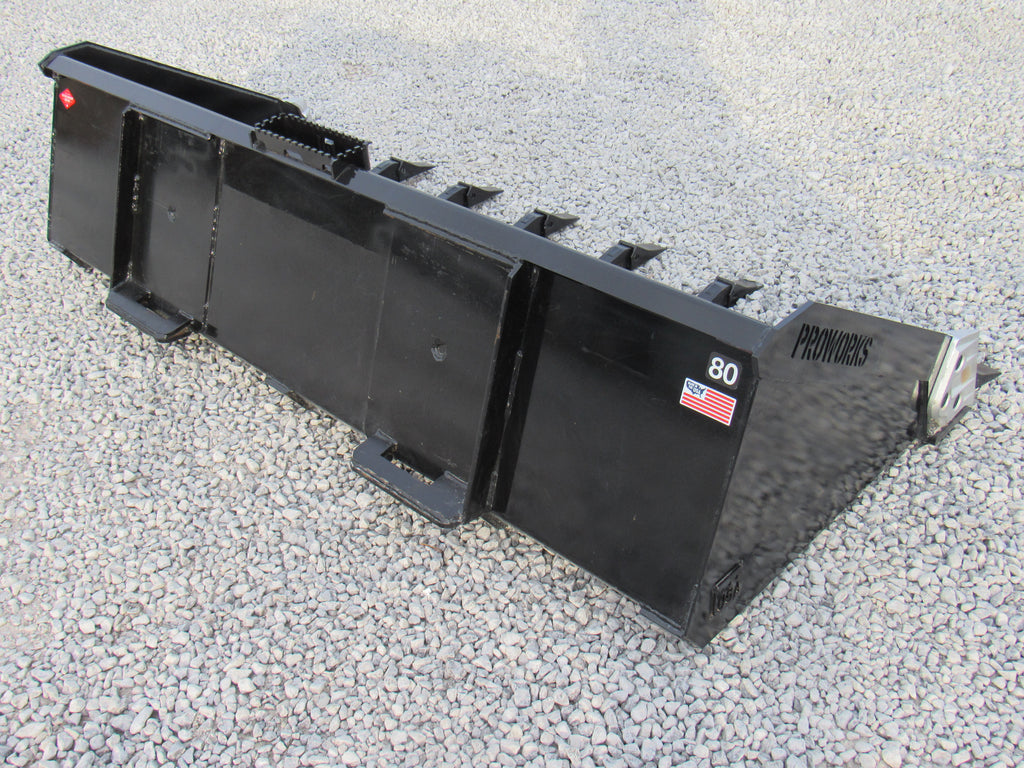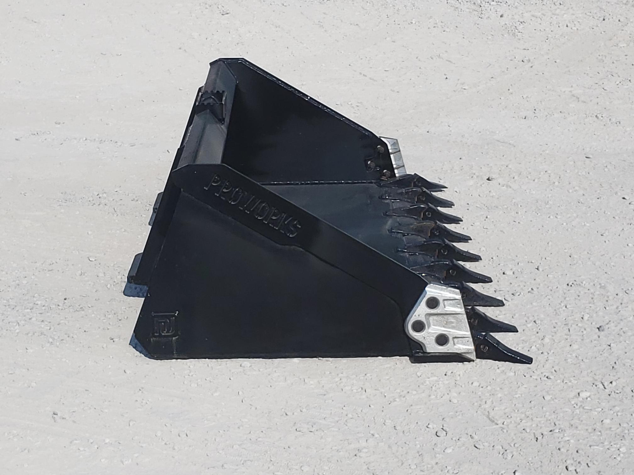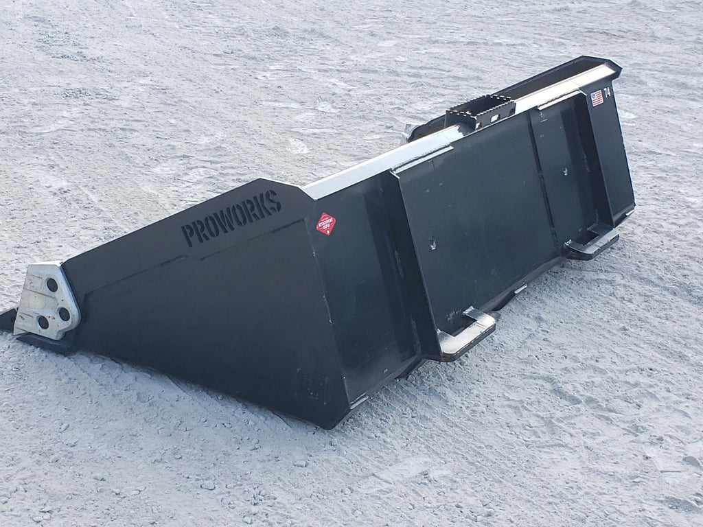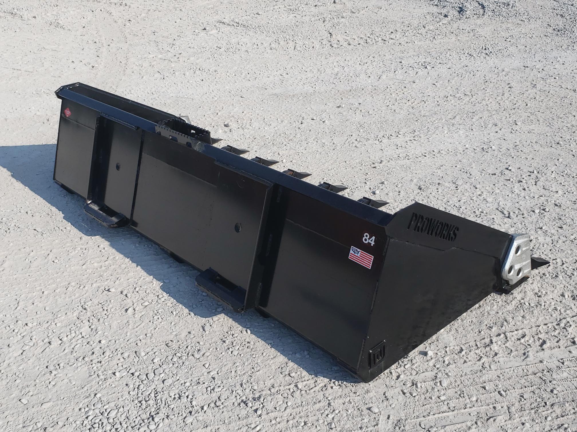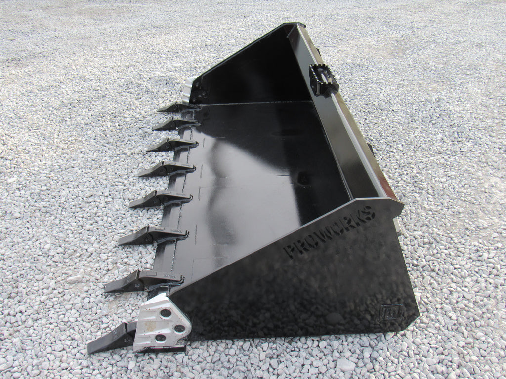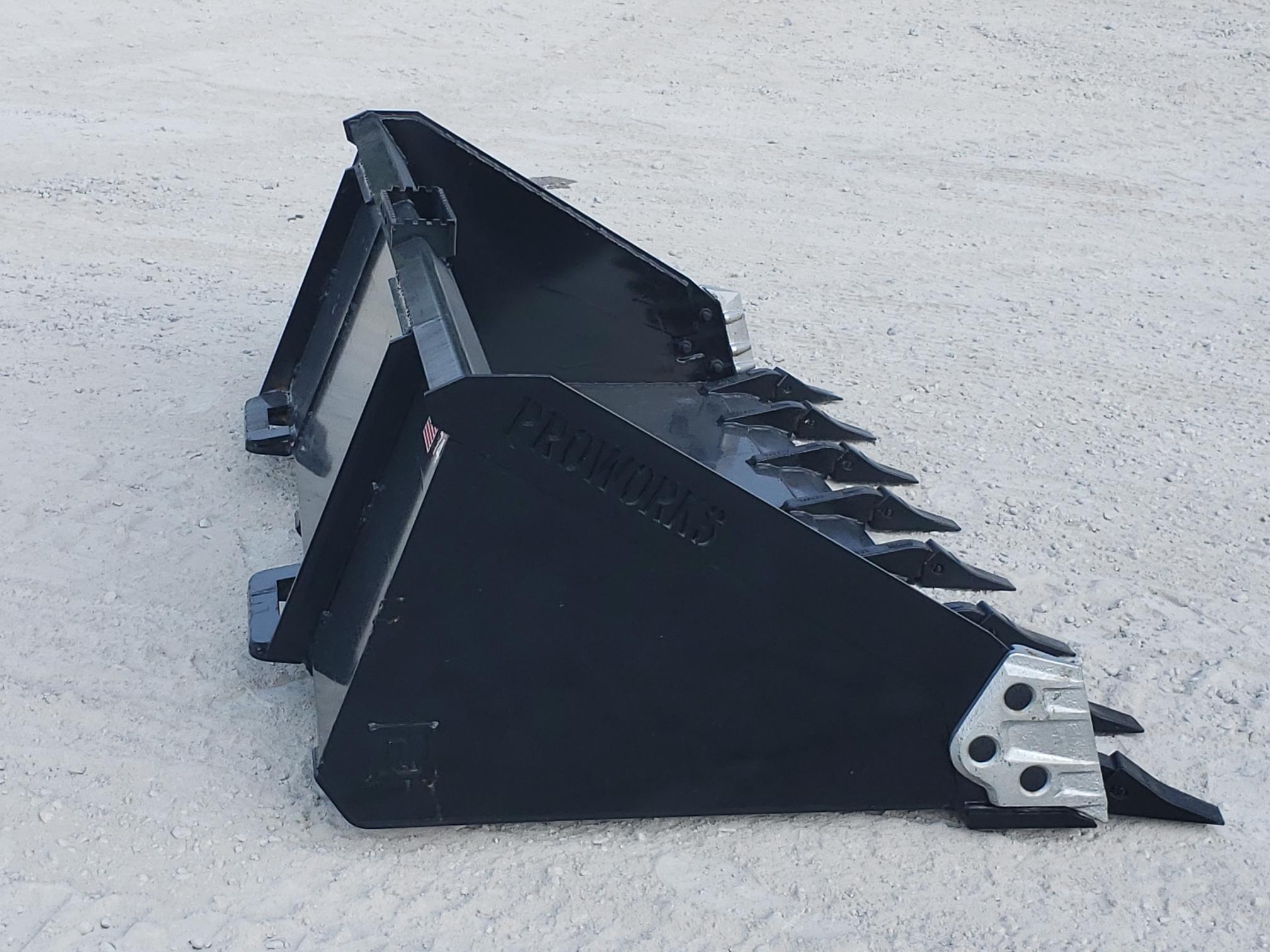 The severe duty low profile bucket from PROWORKS is ideal for moving, digging, and grading dirt or gravel. This bucket is great for general purpose bucket use and features a 3/16″ wrap, 3/8″ side stiffener with larger heavy-duty profile, and bolt on side cutters making this a very durable/long lasting bucket. This bucket is made in the United States by American craftsmen, as are all PROWORKS brand attachments.