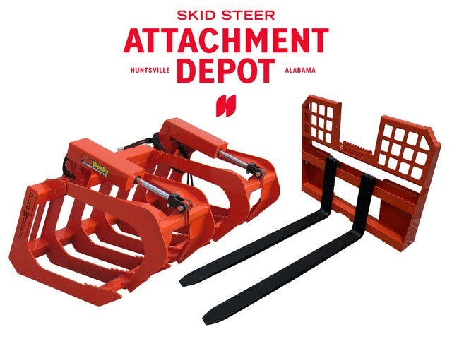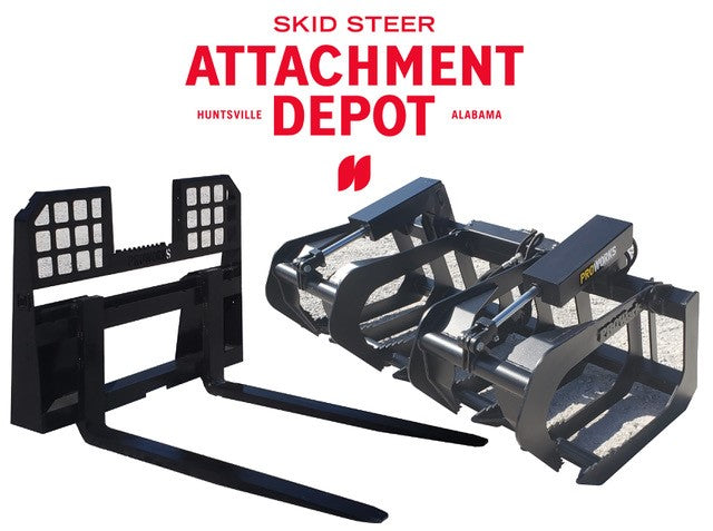 PROWORKS Root Bucket Grapple with Grease Fittings and 48" Long Walk Through Pallet Fork Combo Skid Steer Quick Attach